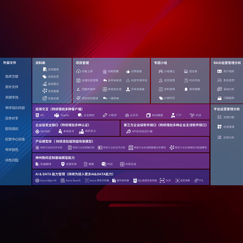 医疗器械产品上市前,,,,要熟悉严格与繁复评审标准,,,整理分析监管机构指导文件中的海量信息。。。。企业急需一个智能化解决方案,,,提升知识管理效率,,,,提高评审通过率,,以提升其市场竞争力。。